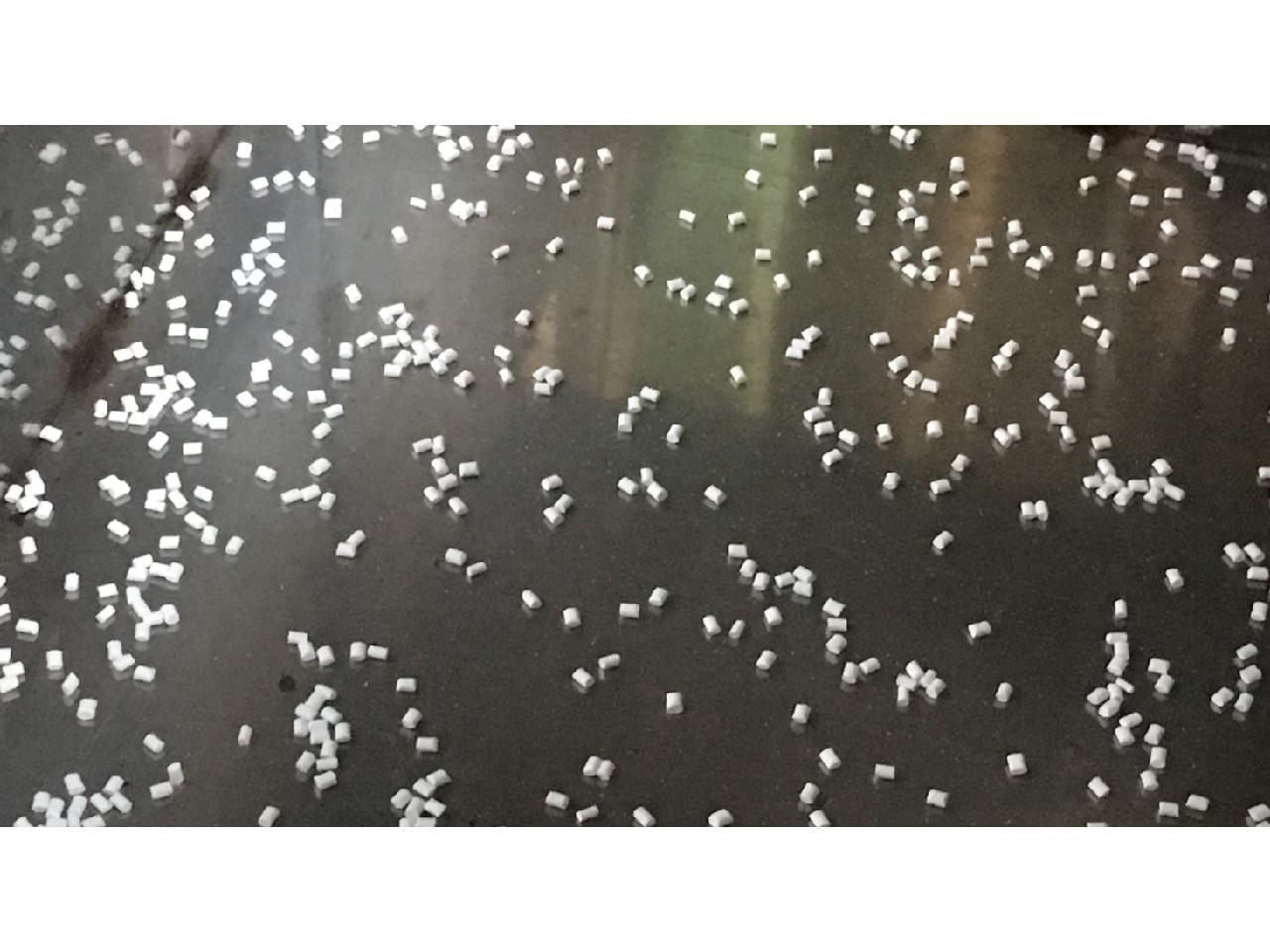 お米の粒くらいの大きさの樹脂(例えばプラスチック)の特殊な製造を行っている工場での作業。 |